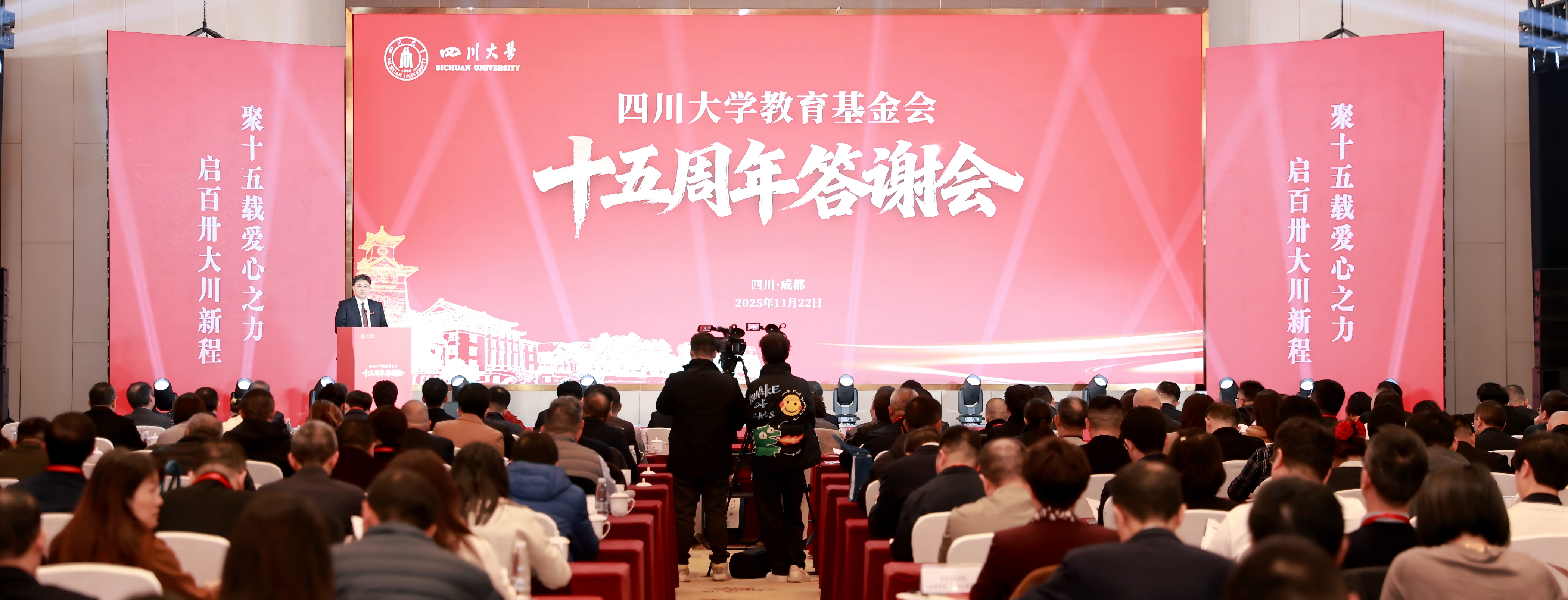 2025年11月22日,四川大学教育基金会十五周年答谢会在学校国际学术交流中心圆满举行。本次答谢会以“聚十五载爱心之力,启百卅大川征程”为主题,汇聚了业务主管单位领导、爱心捐赠人及捐赠单位代表、各地校友会代表、校领...