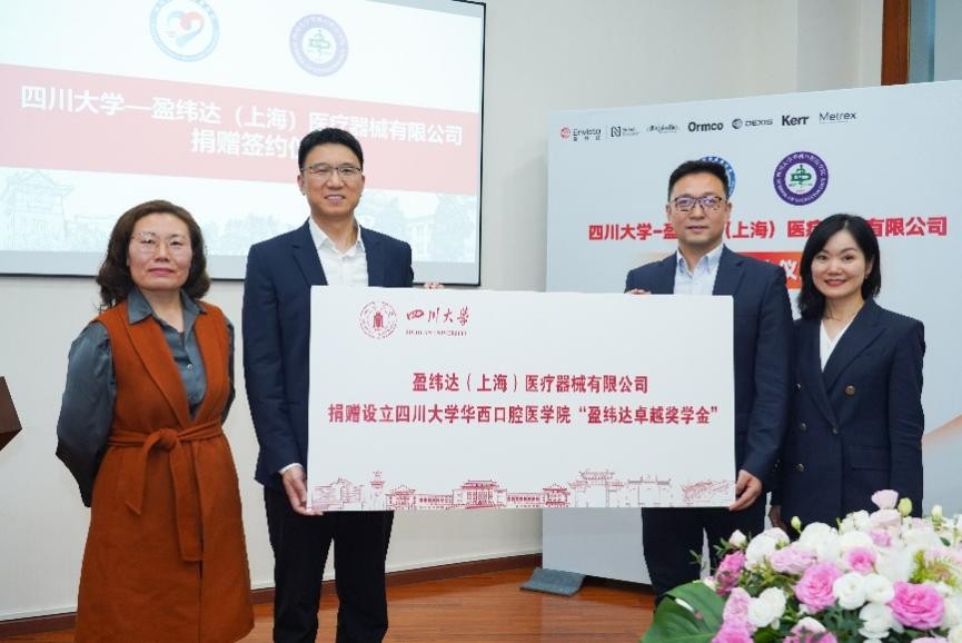 2025年11月5日,全球大型口腔医疗器械集团盈纬达与四川大学华西口腔医学院“卓越奖学金”捐赠仪式,在华西口腔医学院教学楼正式举行。盈纬达正畸和影像事业部总经理徐晓东、四川大学教育基金会副秘书长贾秀娥、四川大学华西口腔医学院副院长袁泉、四川大学教育基金会项目部部长王汾雁、华西口腔医学院对外交流办公室主任刘晨璐等出席活动,开启口腔专业人才培养的全新阶段。