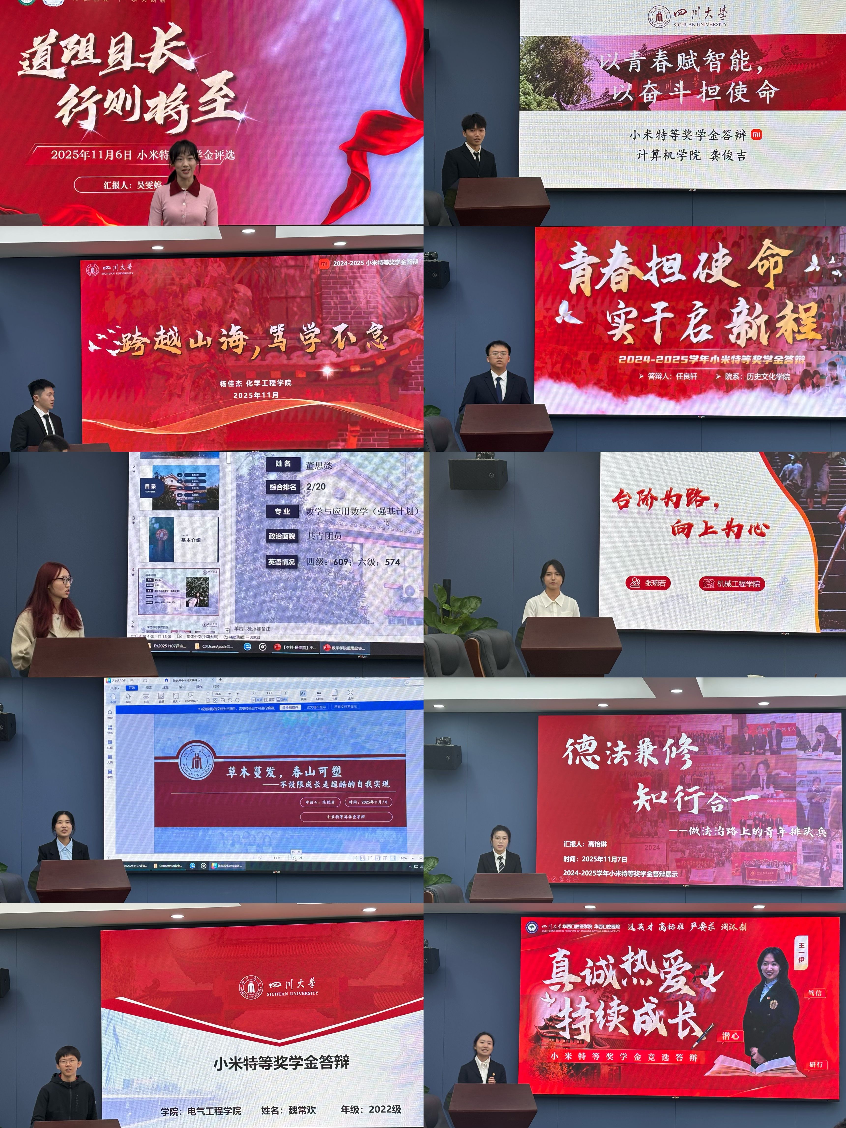 同学们积极展示自我风采,充分展现了川大学子突出的综合能力和优秀品质。评委根据答辩人的个人材料及现场答辩综合表现,最终评选出5名同学进入“小米特等奖学金”公示期。